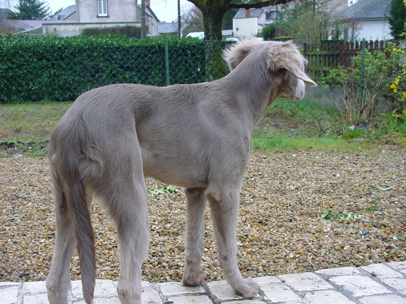 ensemble agréable,70cm, excllt ossature et proportions d'ensemble.Tete masculine,avec un profil agréable,une excellente oreille, babine et encolure.Excellente ligne de dessus et de dessous, croupe bien placée,Fouet bien attaché et de bonne longueur.Excellent poil et couleur.