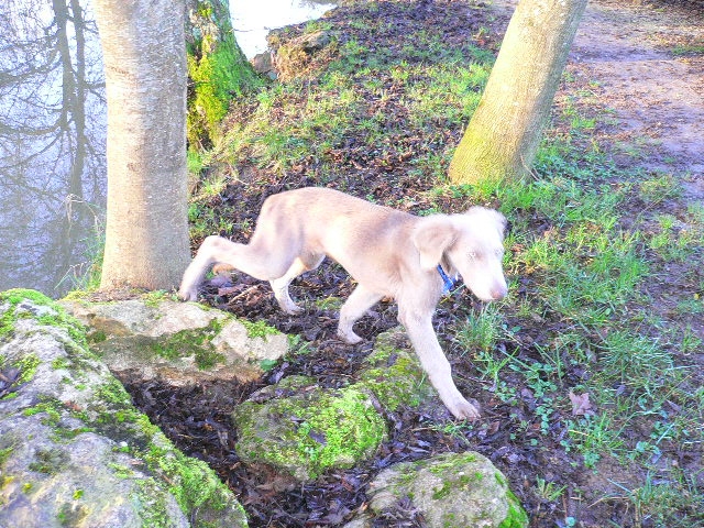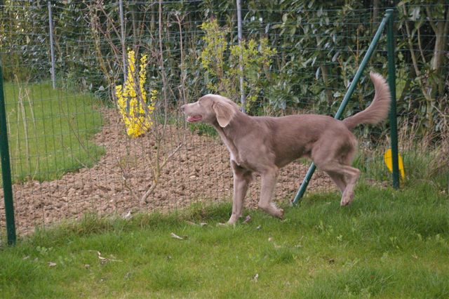 Tête bien dans le type, excellente sortie d'encolure,poitrine bien éclatée et descendue,aplombs puissants.excellente allure prend bien son terrain