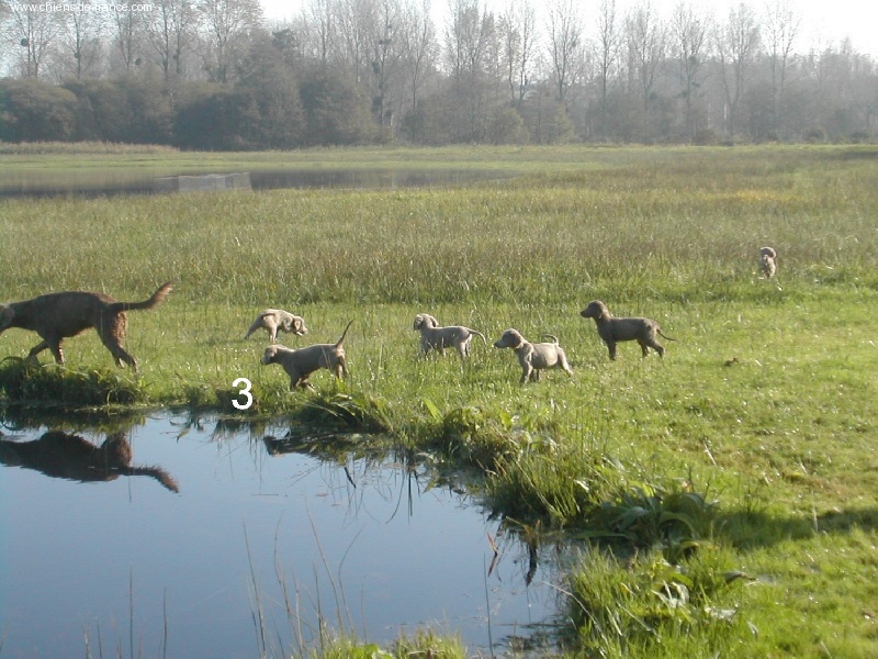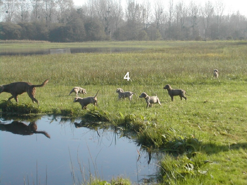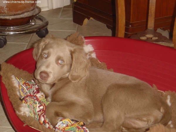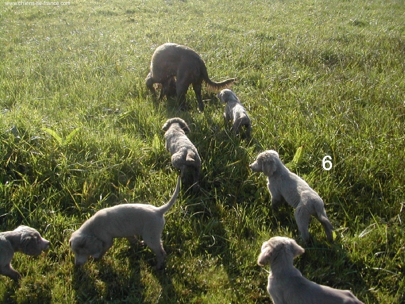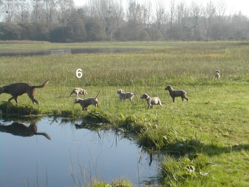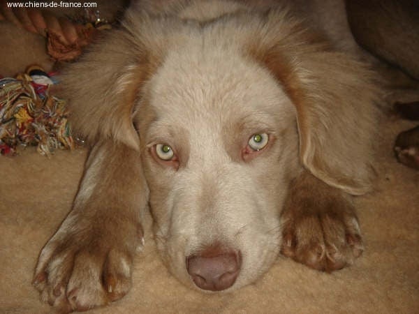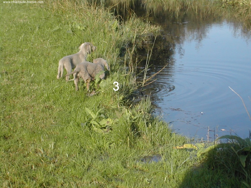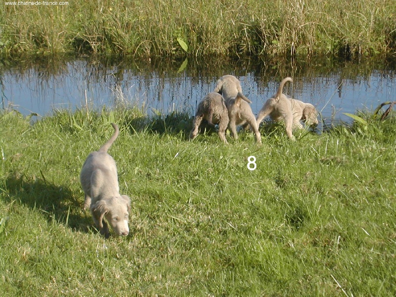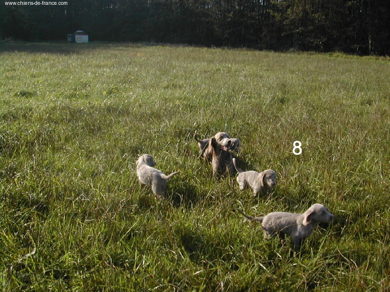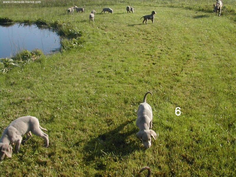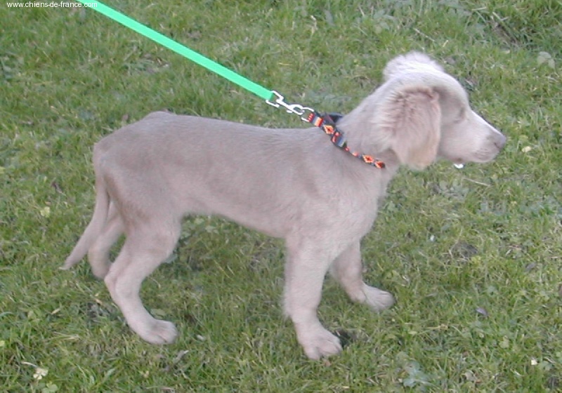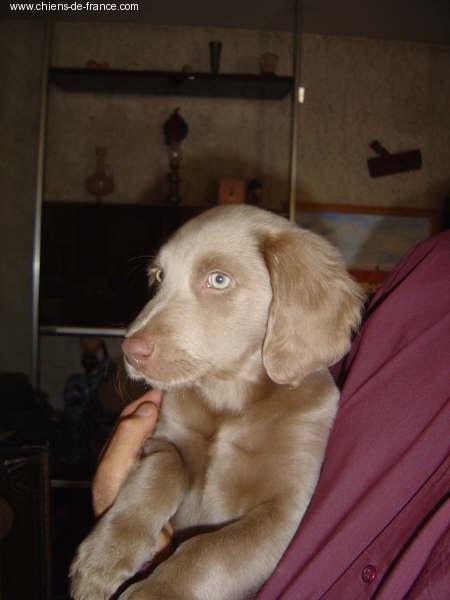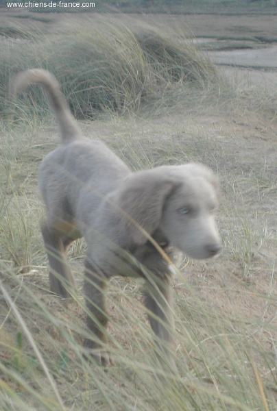 Chiot gris chevreuil clair (lumineux). Aucune tache blanche. Vermifugée le 19.10.2006. Examiné par le DR JP ROSSATO le 24.10.2006 sans aucunes malformations ni vices cachés. Vaccinée en ordre. Transpondeur électronique implanté. Rapport ADN en cours. Une petite chienne qui n'a peur de rien, Très alerte, très joueuse.Le 12.11.06 Arko est élu Vice-Champion du Monde en Classe Travail à Poznan en Pologne et la mère VICKY vient de remporter son CHCS titre de Championne de FRANCE. Cette chienne est destinée à l'élevage. Déjà testée: solide au feu, terre et eau. Propriétaire famille LECOQ Dépt (14), chasseur.